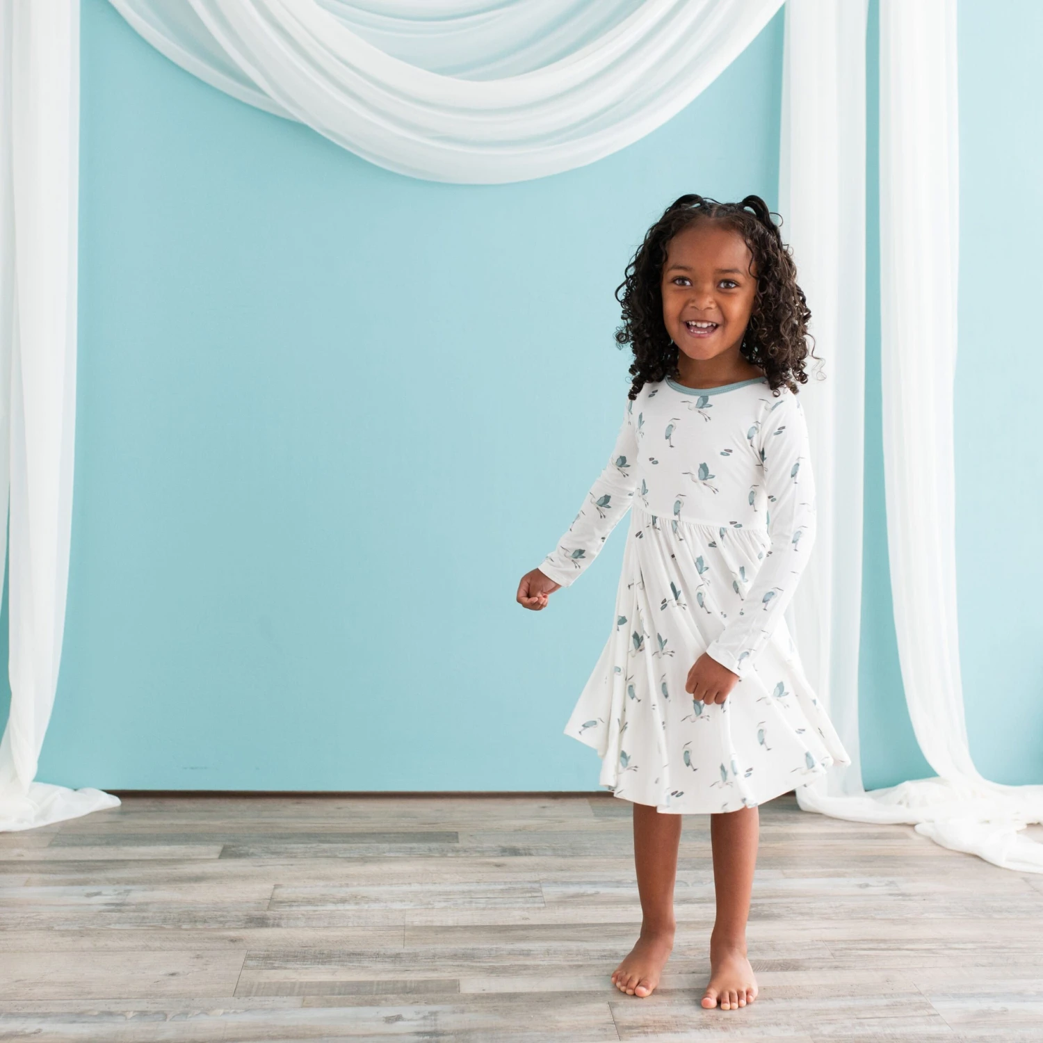 Cut from soft, stretchy bamboo fabric, this twirl dress features a full skirt so your toddler can spin in style. The classic design of the dress can easily be dressed up or down, making it the perfect everyday outfit.