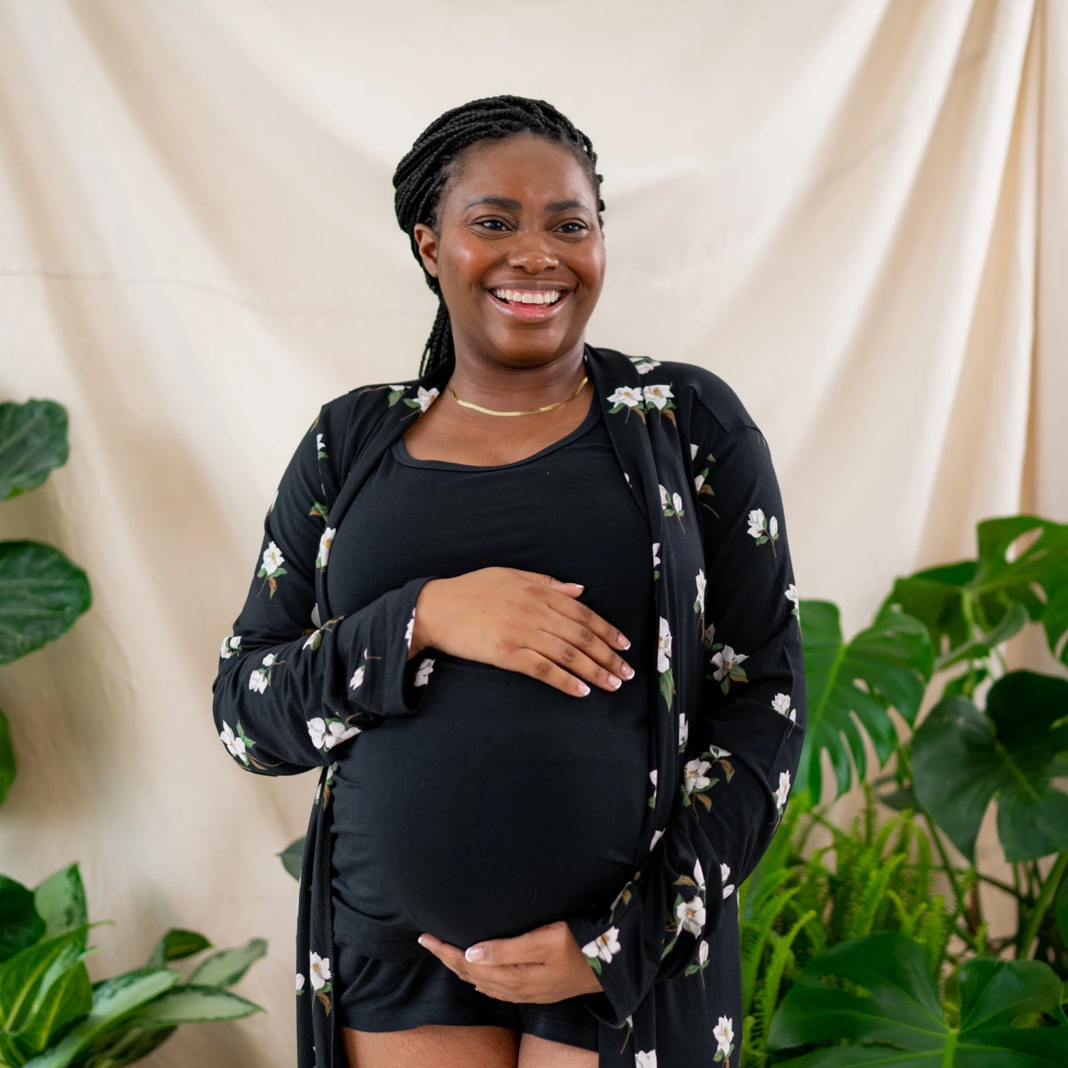 As your baby transitions from the womb to your arms, this robe will carry you through pregnancy, birth, and postpartum. The soft, buttery fabric is light and breathable enough to wear as an outer layer or alone. An inner string keeps everything tucked in place, while an outer belt is sewn into place so it’s easy to tie and never lost.